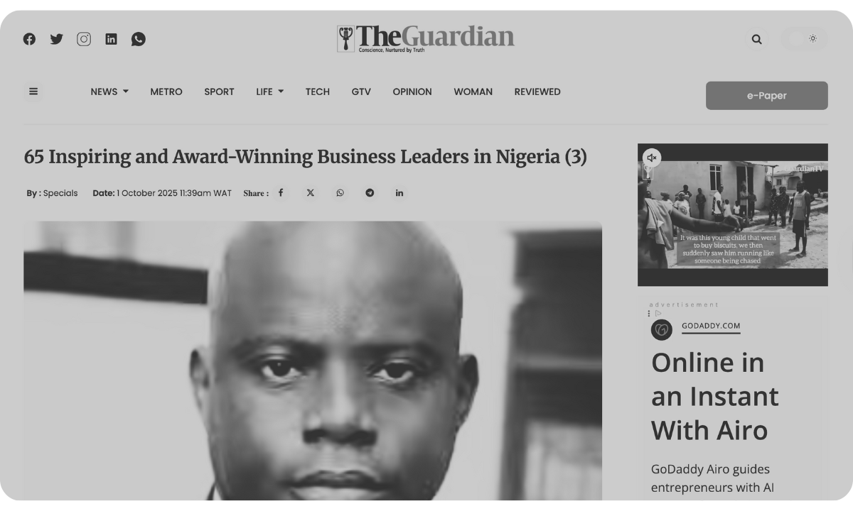 Our CEO Named Among Nigeria’s 65 Most Inspiring Business Leaders